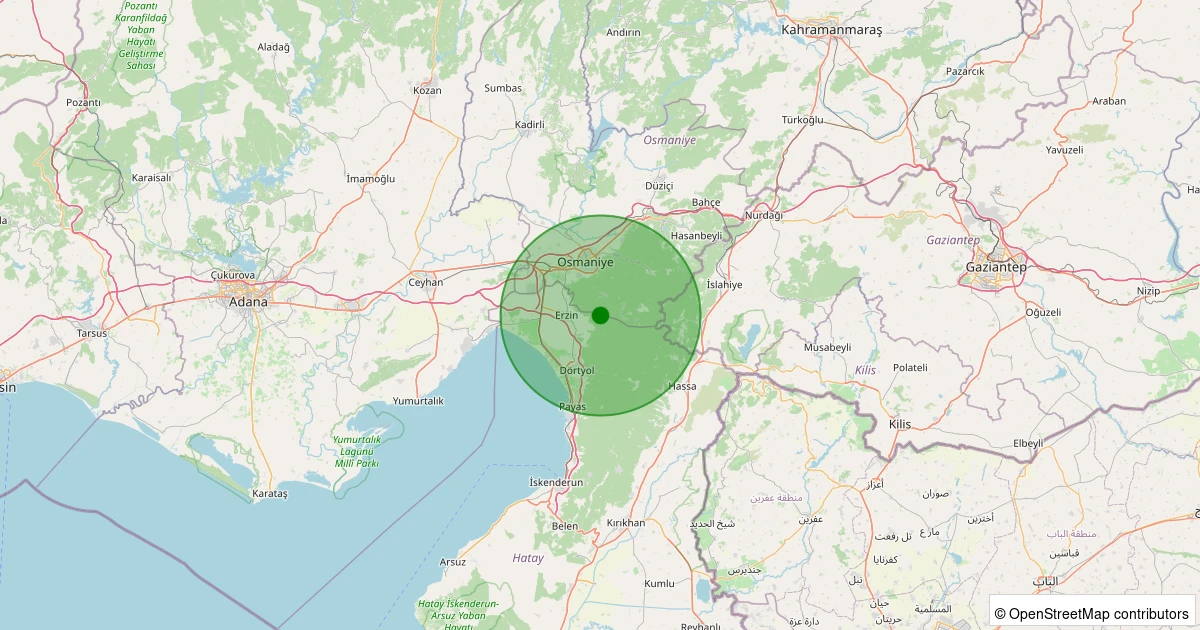 Son bir hafta içerisinde Osmaniye şehri Merkez - Dereobası Köyü noktasından 100 km yarıçap içerisinde toplamda 78 deprem kaydedilmiştir. Bu depremlerden en büyüğü 3.3 büyüklüğünde ve en sığ odaklısı 3.60 kilometre derinlikte gerçekleşmiştir.