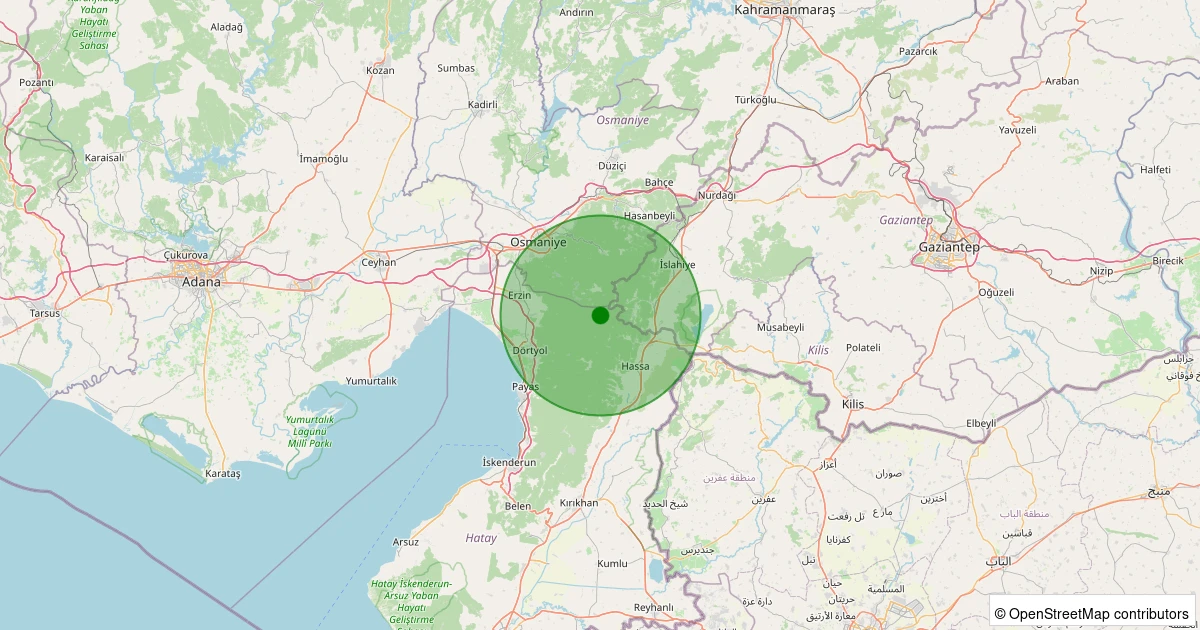 Son 7 gün içinde Dörtyol - Çat noktasından 100 km yarıçap içerisinde meydana gelen diğer depremler: