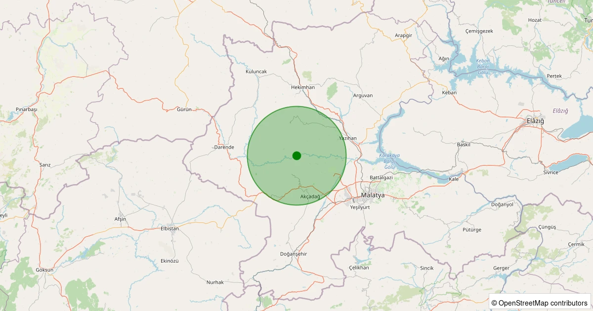 Son 7 gün içinde Darende - Kerimli noktasından 100 km yarıçap içerisinde meydana gelen diğer depremler: