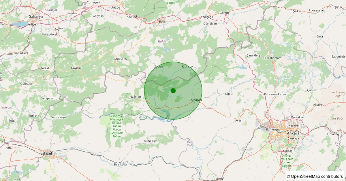 Son 7 gün içinde Beypazarı - Sekli noktasından 100 km yarıçap içerisinde meydana gelen diğer depremler: