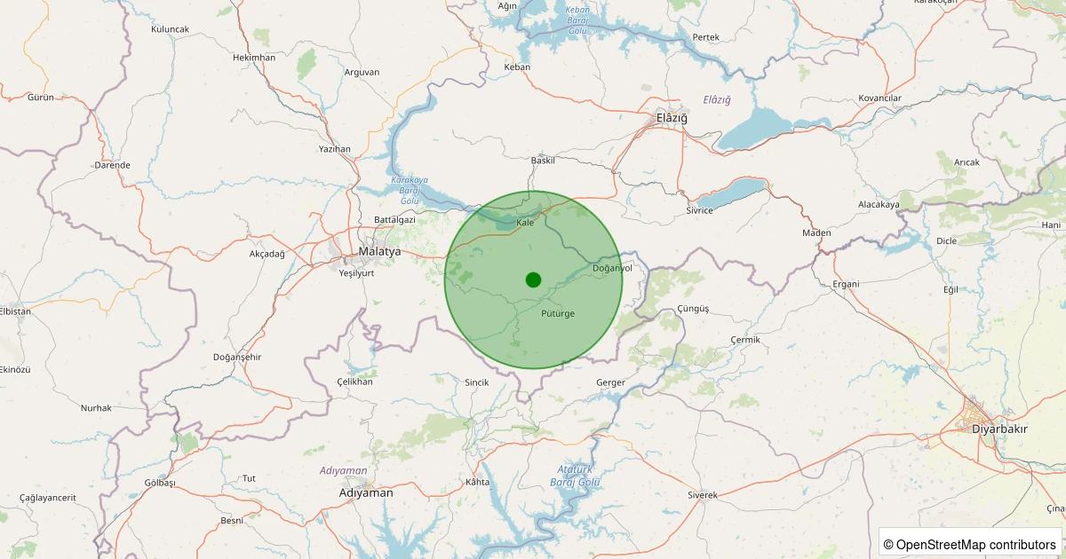 Son 7 gün içinde Pütürge - Aktarla Köyü noktasından 100 km yarıçap içerisinde meydana gelen diğer depremler: