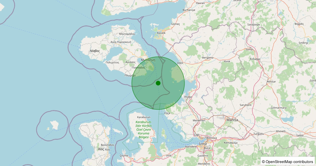 Son 7 gün içinde MIDILLI noktasından 100 km yarıçap içerisinde meydana gelen diğer depremler: