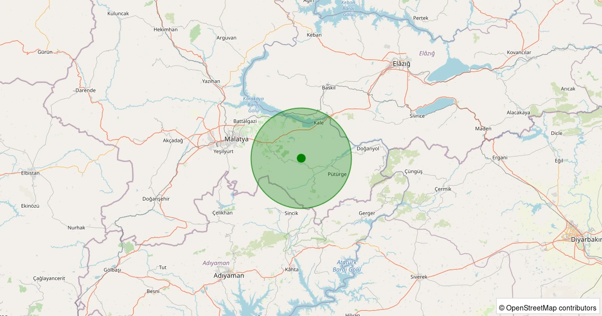 Son 7 gün içinde Pütürge - Kökpınar Köyü noktasından 100 km yarıçap içerisinde meydana gelen diğer depremler: