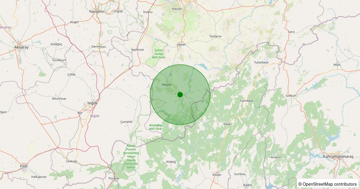 Son 7 gün içinde Yahyalı - Yenice noktasından 100 km yarıçap içerisinde meydana gelen diğer depremler: