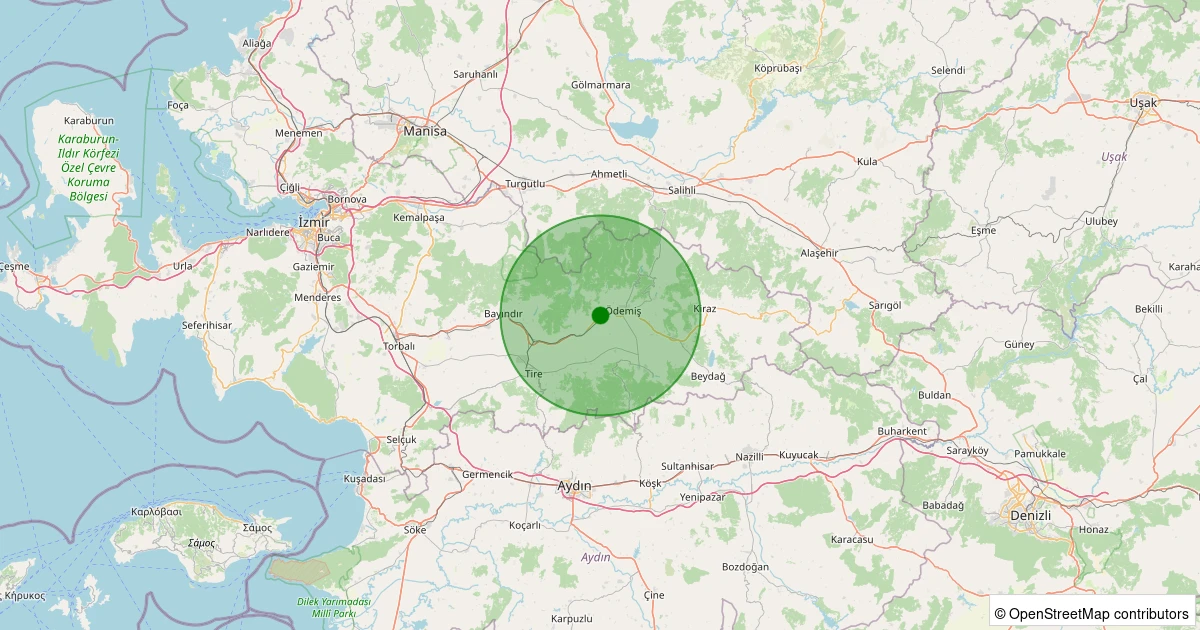 Son 7 gün içinde Ödemiş - Demircili noktasından 100 km yarıçap içerisinde meydana gelen diğer depremler: