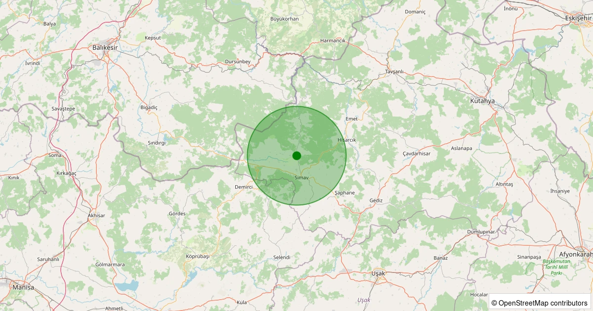 Son 7 gün içinde Simav - Naşa/Cumhuriyet noktasından 100 km yarıçap içerisinde meydana gelen diğer depremler: