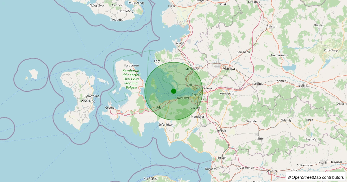 Son bir hafta içerisinde IZMIR noktasından 100 km yarıçap içerisinde toplamda 62 deprem kaydedilmiştir. Bu depremlerden en büyüğü 2.9 büyüklüğünde ve en sığ odaklısı 3.67 kilometre derinlikte gerçekleşmiştir.