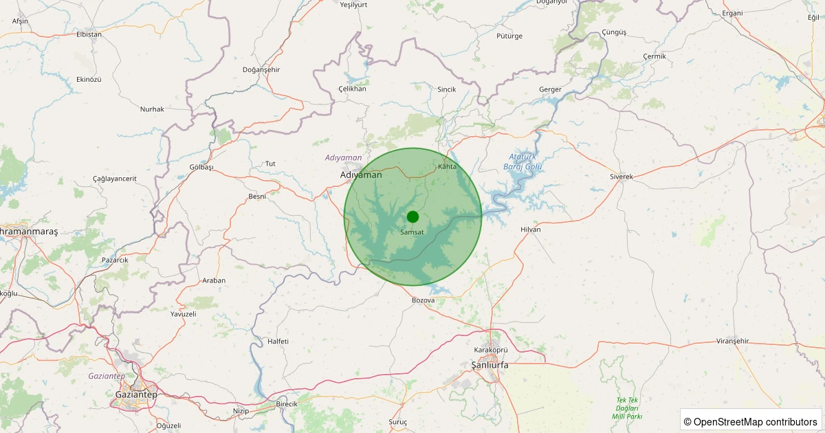 Son 7 gün içinde Samsat - Taşkuyu Köyü noktasından 100 km yarıçap içerisinde meydana gelen diğer depremler: