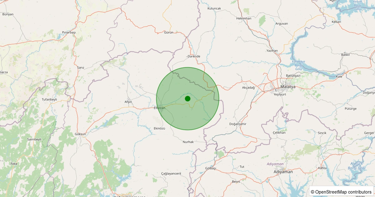 Son 7 gün içinde Elbistan - İkizpınar Köyü noktasından 100 km yarıçap içerisinde meydana gelen diğer depremler: