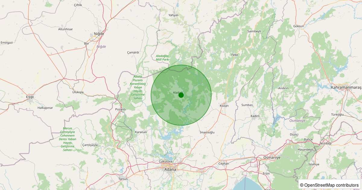 Son bir hafta içerisinde Adana şehri Aladağ - Gireğiyeniköy noktasından 100 km yarıçap içerisinde toplamda 51 deprem kaydedilmiştir. Bu depremlerden en büyüğü 3.1 büyüklüğünde ve en sığ odaklısı 1.90 kilometre derinlikte gerçekleşmiştir.