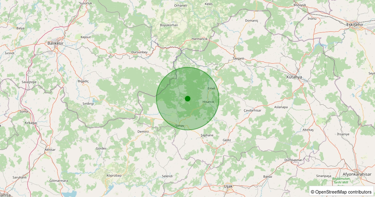Son 7 gün içinde Simav - Yeşildere Köyü noktasından 100 km yarıçap içerisinde meydana gelen diğer depremler: