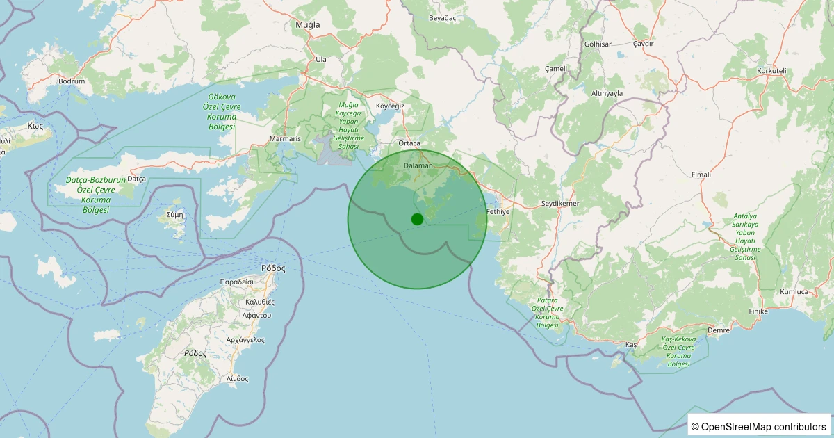 Son 7 gün içinde DALAMAN noktasından 100 km yarıçap içerisinde meydana gelen diğer depremler: