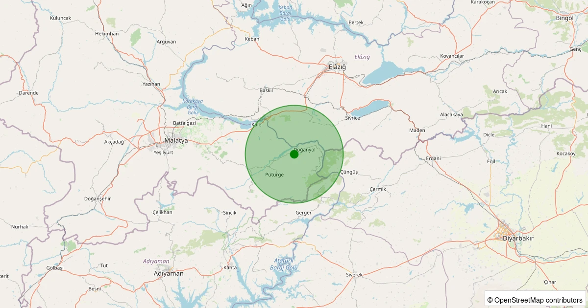 Son 7 gün içinde Doğanyol - Gökçe Beldesi noktasından 100 km yarıçap içerisinde meydana gelen diğer depremler: