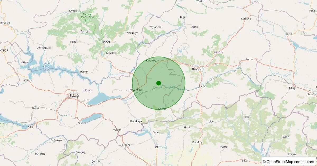 Son 7 gün içinde Palu - Köklüce Köyü noktasından 100 km yarıçap içerisinde meydana gelen diğer depremler: