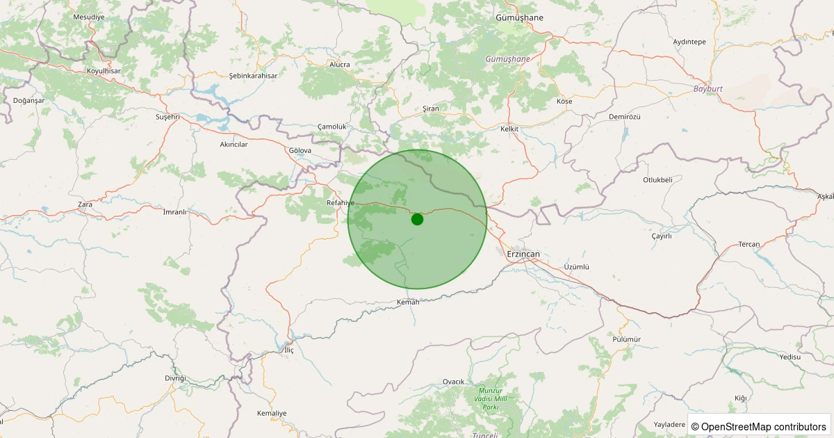Son 7 gün içinde Kemah - Akbudak Köyü noktasından 100 km yarıçap içerisinde meydana gelen diğer depremler: