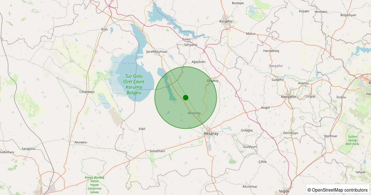 Son bir hafta içerisinde Aksaray şehri Merkez - Yeni Köyü noktasından 100 km yarıçap içerisinde toplamda 13 deprem kaydedilmiştir. Bu depremlerden en büyüğü 1.8 büyüklüğünde ve en sığ odaklısı 4.90 kilometre derinlikte gerçekleşmiştir.