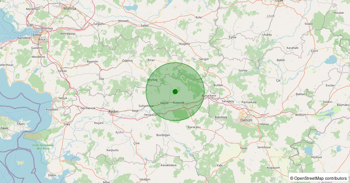 Son 7 gün içinde Nazilli - Kocakesik noktasından 100 km yarıçap içerisinde meydana gelen diğer depremler: