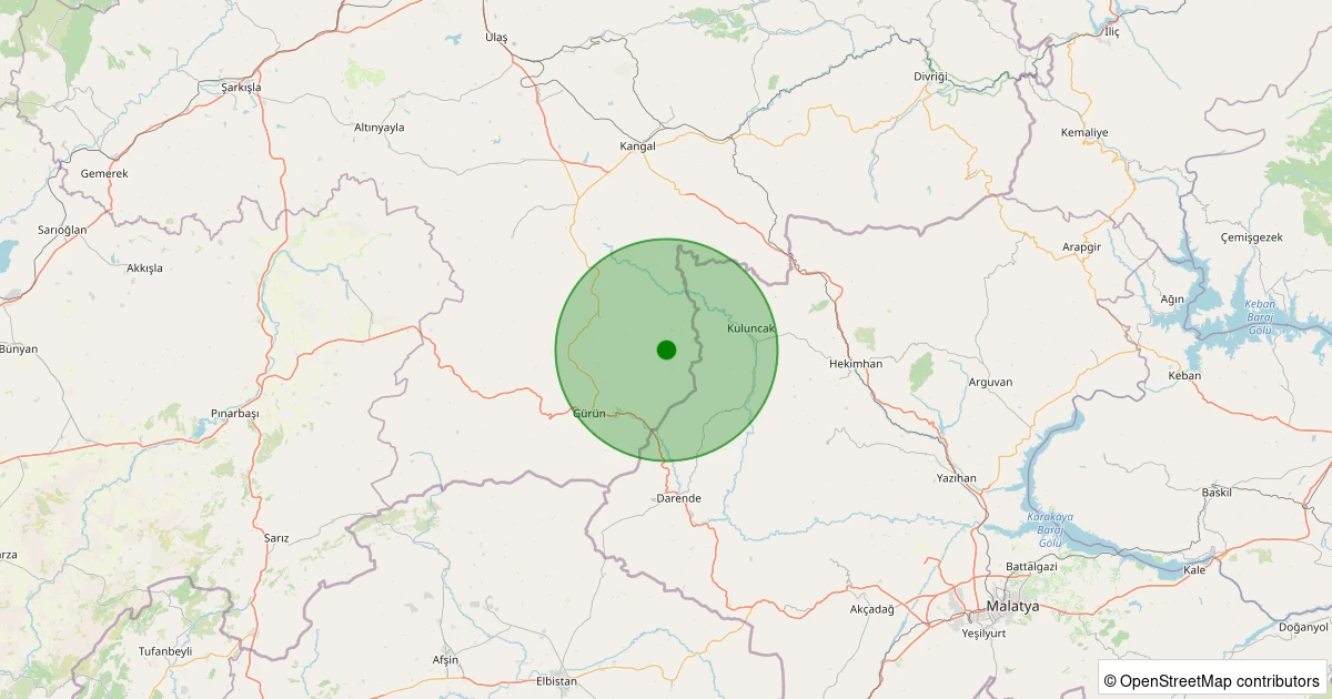Son 7 gün içinde Gürün - Bağlıçay Köyü noktasından 100 km yarıçap içerisinde meydana gelen diğer depremler: