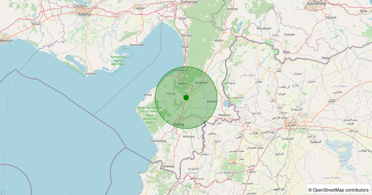 Son 7 gün içinde Antakya - Serinyol/Mustafakemalpaşa noktasından 100 km yarıçap içerisinde meydana gelen diğer depremler: