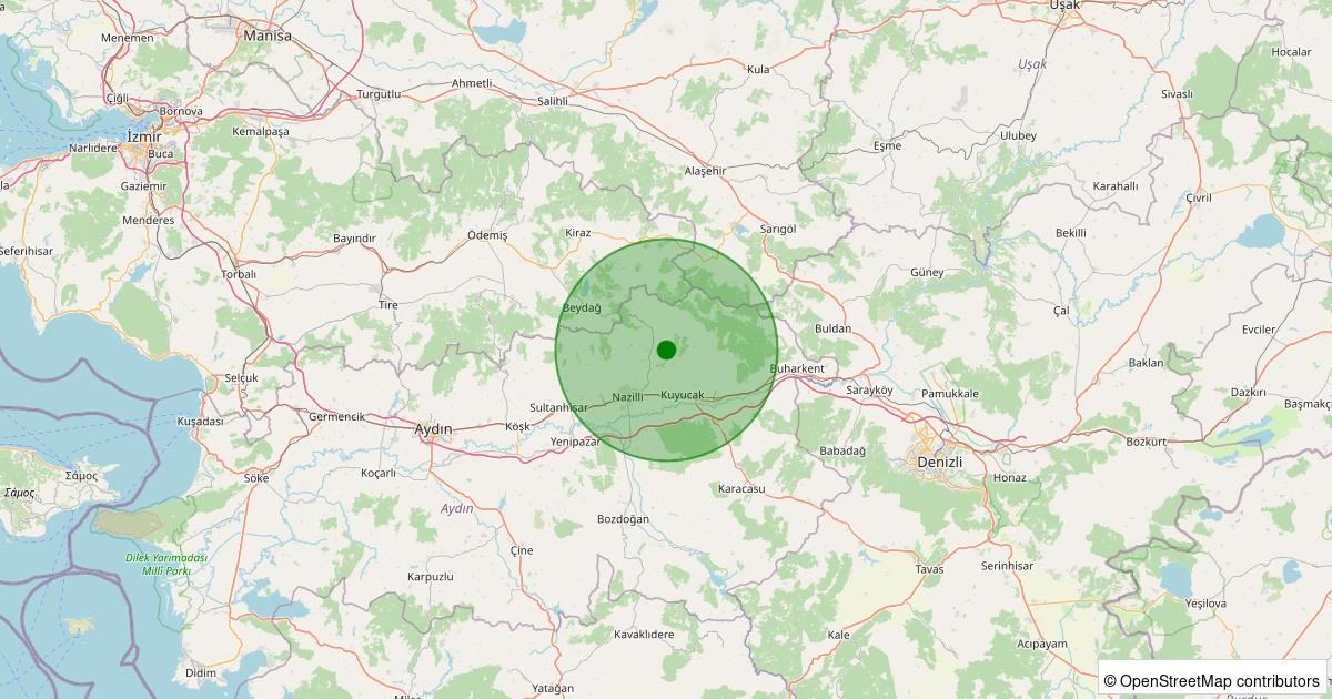 Son 7 gün içinde Nazilli - Bekirler noktasından 100 km yarıçap içerisinde meydana gelen diğer depremler: