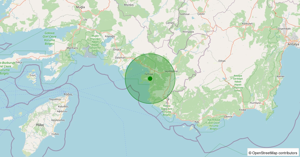 Son 7 gün içinde Fethiye - Hisarönü noktasından 100 km yarıçap içerisinde meydana gelen diğer depremler: