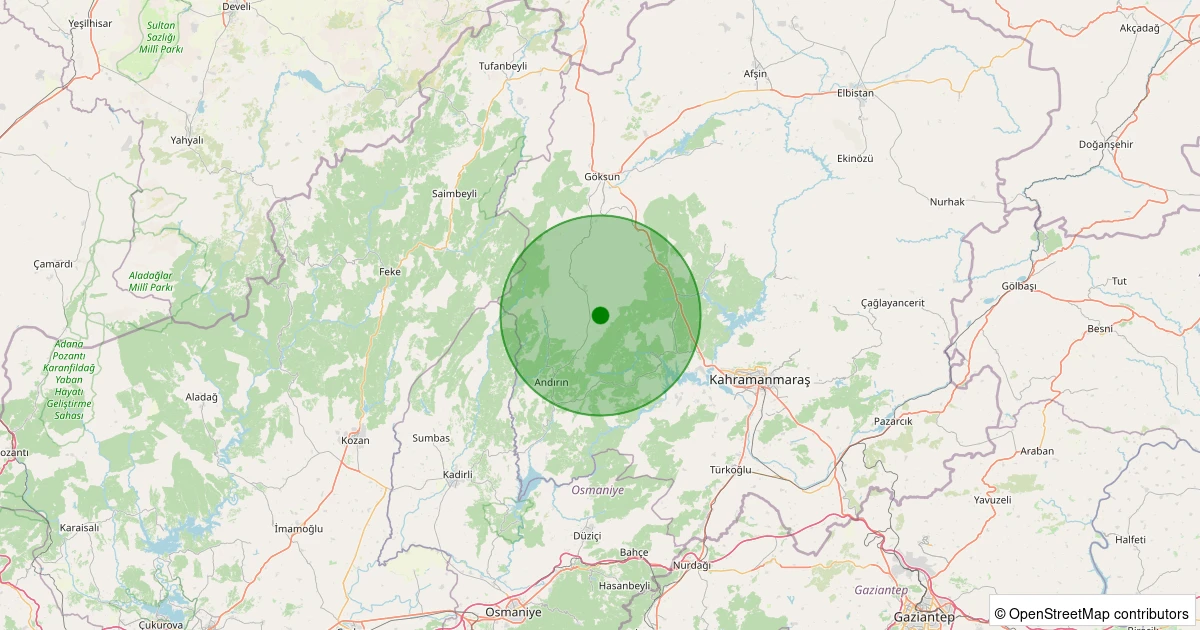 Son 7 gün içinde Andırın - Altınyayla Köyü noktasından 100 km yarıçap içerisinde meydana gelen diğer depremler:
