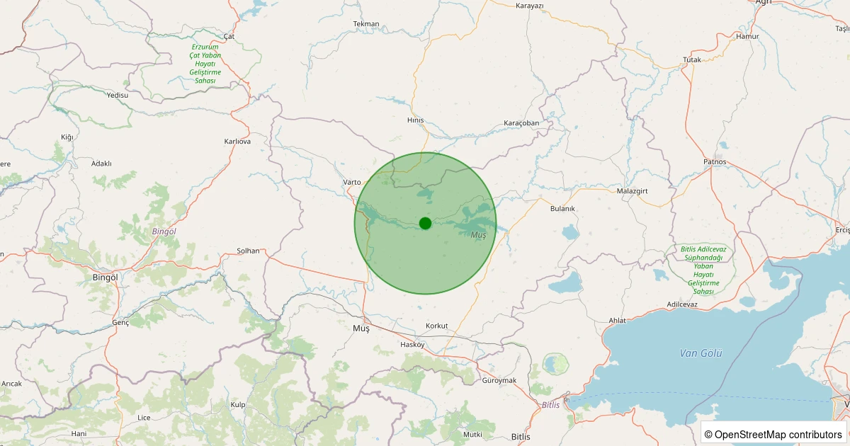 Son 7 gün içinde Varto - Kumlukıyı Köyü noktasından 100 km yarıçap içerisinde meydana gelen diğer depremler: