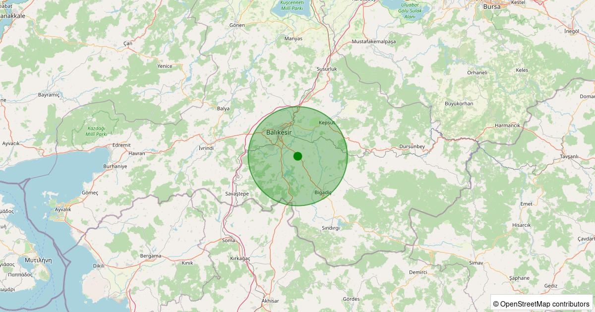 Son 7 gün içinde Altıeylül - Paşaköy noktasından 100 km yarıçap içerisinde meydana gelen diğer depremler: