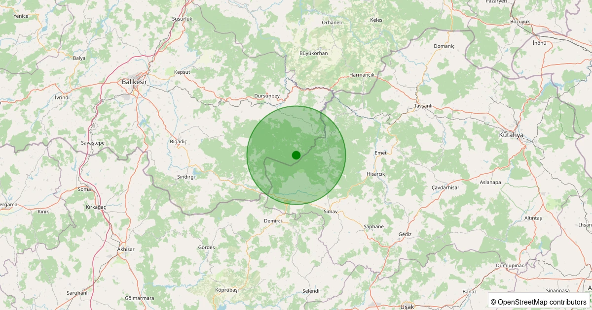 Son 7 gün içinde Simav - Çamlık Köyü noktasından 100 km yarıçap içerisinde meydana gelen diğer depremler: