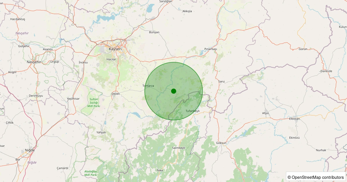 Son 7 gün içinde Tomarza - Işıklar noktasından 100 km yarıçap içerisinde meydana gelen diğer depremler: