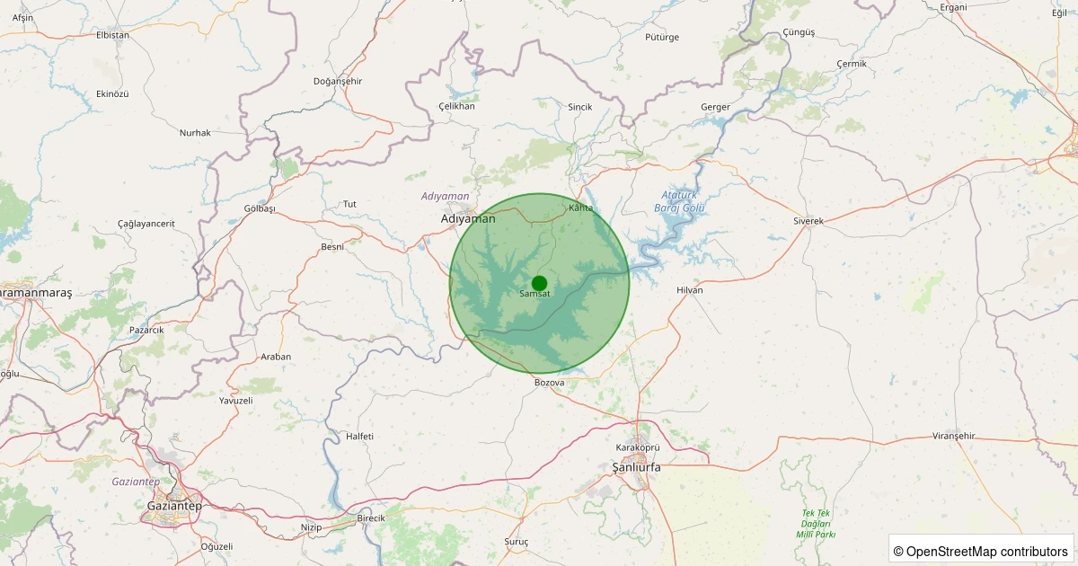 Son 7 gün içinde Samsat - Uzuntepe Köyü noktasından 100 km yarıçap içerisinde meydana gelen diğer depremler: