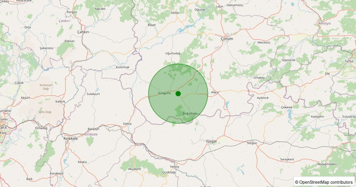 Son 7 gün içinde Sungurlu - Kırankışla Köyü noktasından 100 km yarıçap içerisinde meydana gelen diğer depremler: