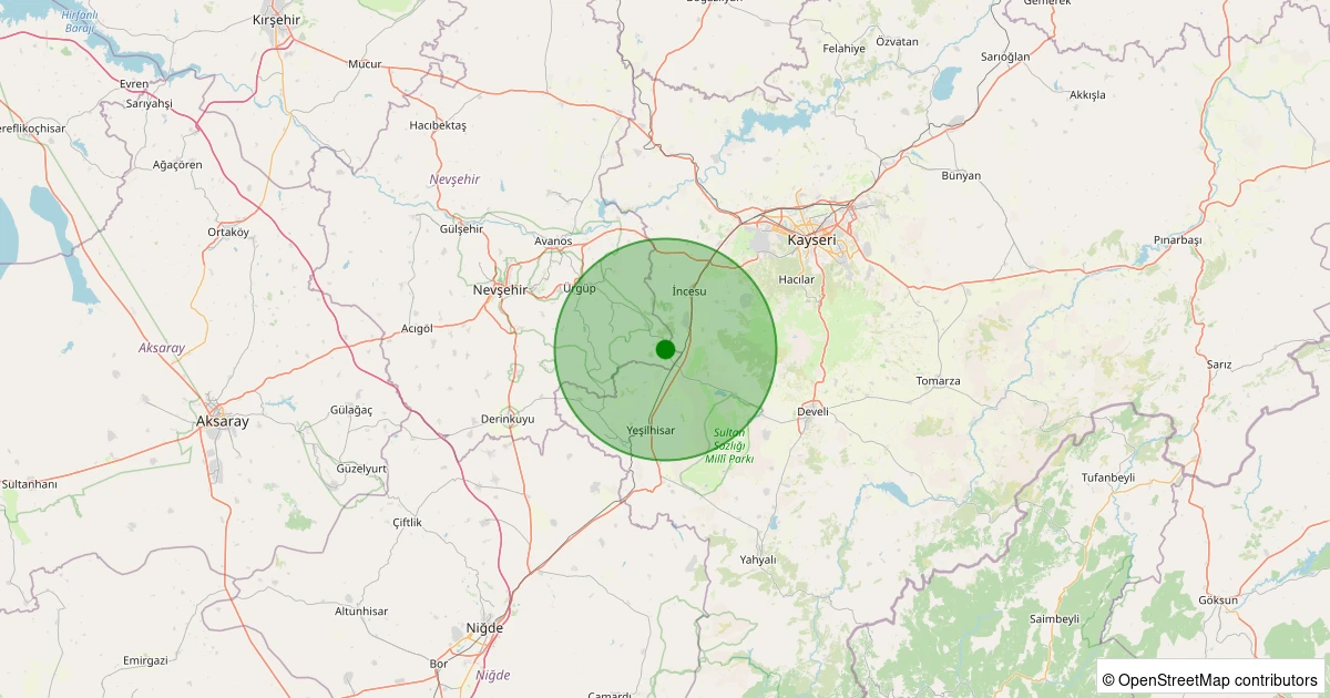 Son 7 gün içinde Ürgüp - Başdere Orta Köyü noktasından 100 km yarıçap içerisinde meydana gelen diğer depremler: