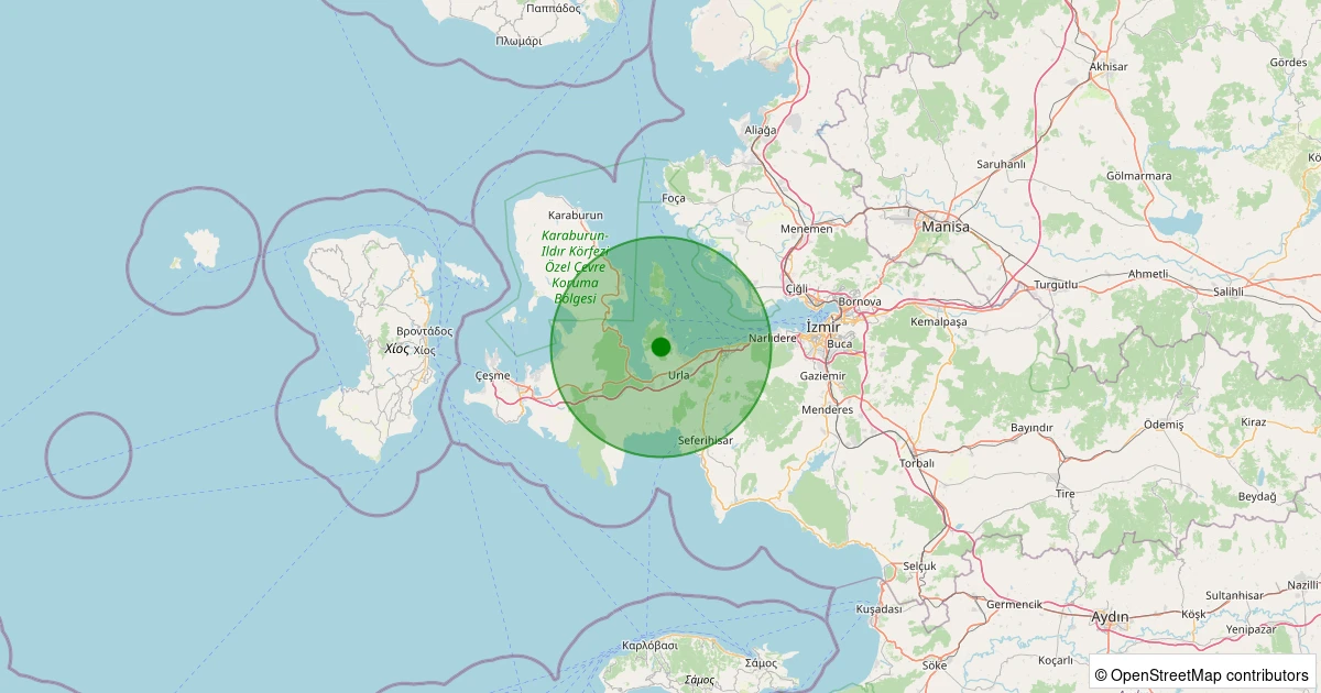 Son 7 gün içinde Urla - Gülbahçe noktasından 100 km yarıçap içerisinde meydana gelen diğer depremler: