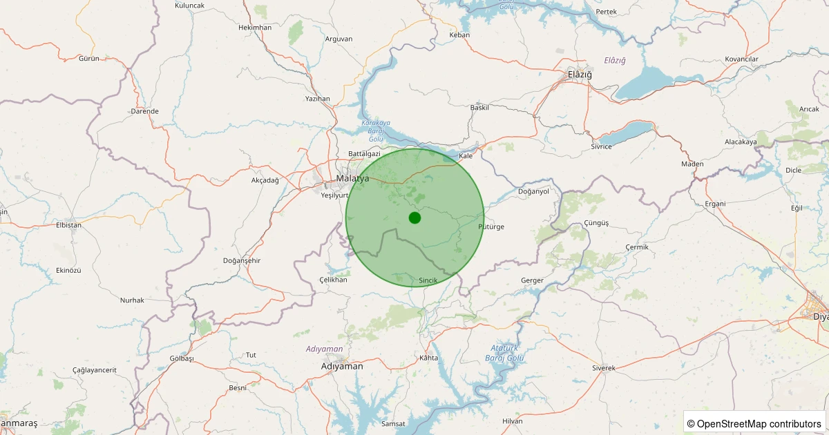 Son 7 gün içinde Battalgazi - Yaygın Köyü noktasından 100 km yarıçap içerisinde meydana gelen diğer depremler: