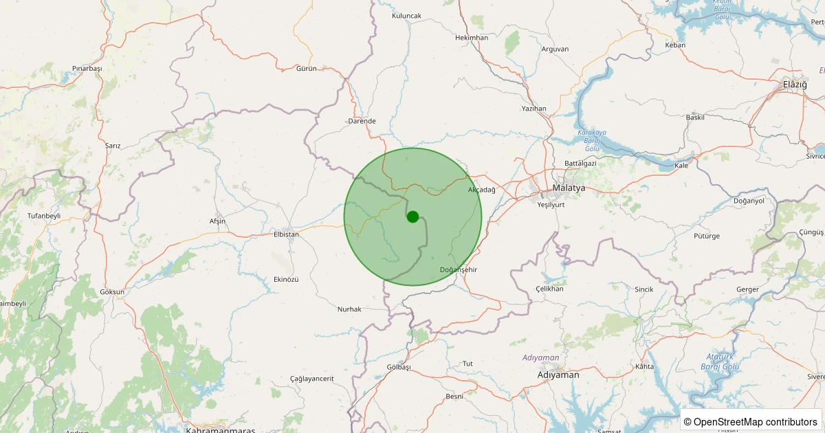 Son 7 gün içinde Akçadağ - Harunuşağı noktasından 100 km yarıçap içerisinde meydana gelen diğer depremler: