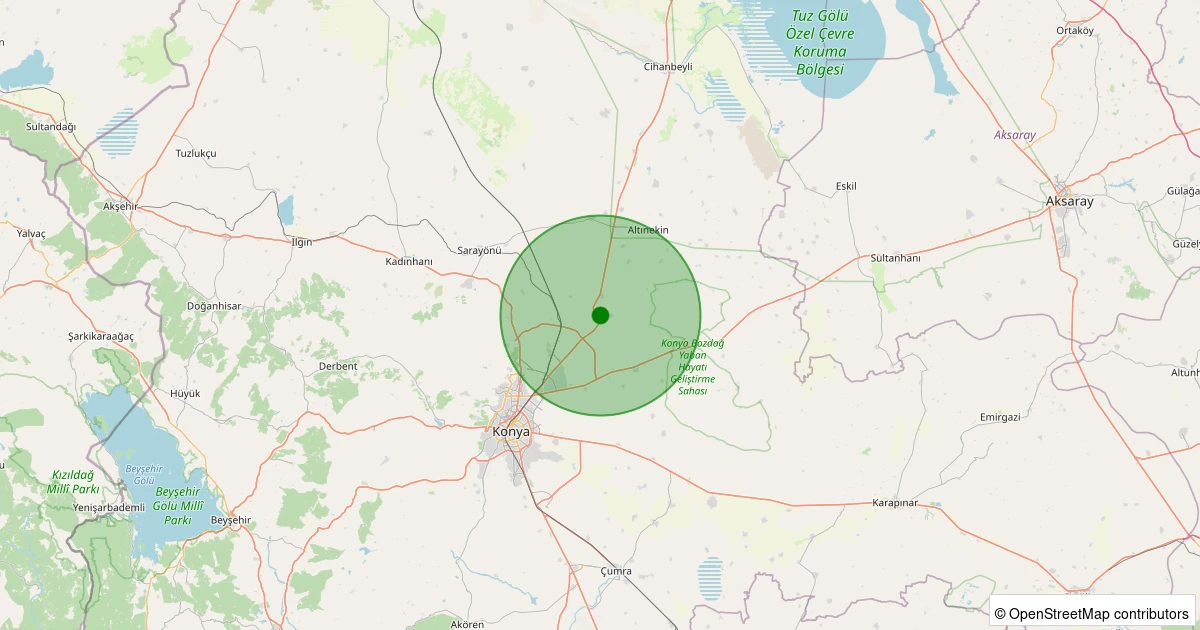 Son 7 gün içinde Selçuklu - Eğribayat Köyü noktasından 100 km yarıçap içerisinde meydana gelen diğer depremler: