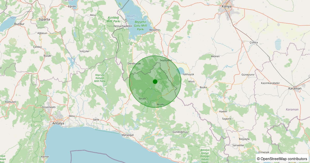 Son 7 gün içinde Akseki - Salihler Köyü noktasından 100 km yarıçap içerisinde meydana gelen diğer depremler: