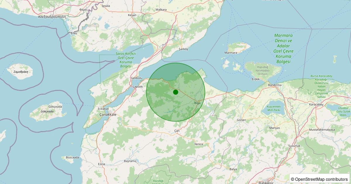 Son 7 gün içinde Biga - Çınardere Köyü noktasından 100 km yarıçap içerisinde meydana gelen diğer depremler: