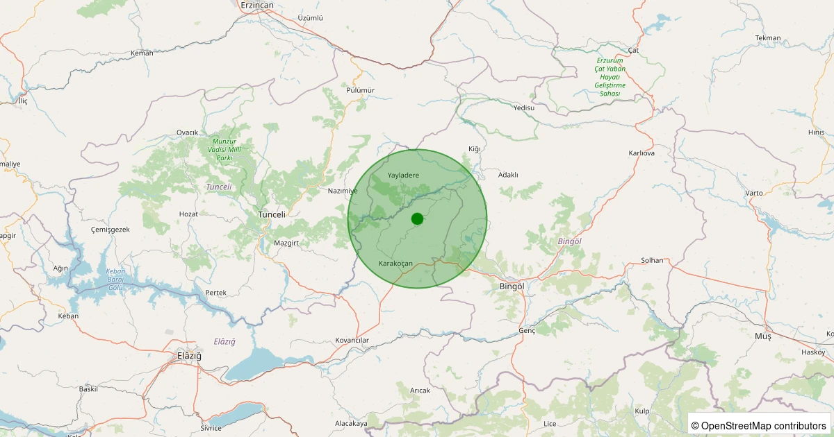 Son 7 gün içinde Karakoçan - Hamurkesen Köyü noktasından 100 km yarıçap içerisinde meydana gelen diğer depremler: