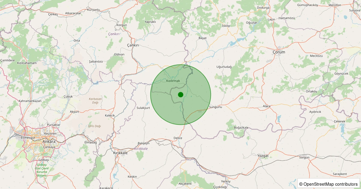Son 7 gün içinde Sungurlu - Bağdatlı Köyü noktasından 100 km yarıçap içerisinde meydana gelen diğer depremler: