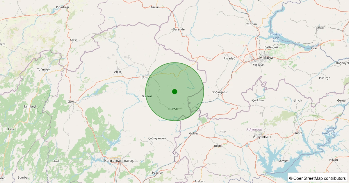 Son 7 gün içinde Elbistan - Bakış-Soğucak Köyü noktasından 100 km yarıçap içerisinde meydana gelen diğer depremler: