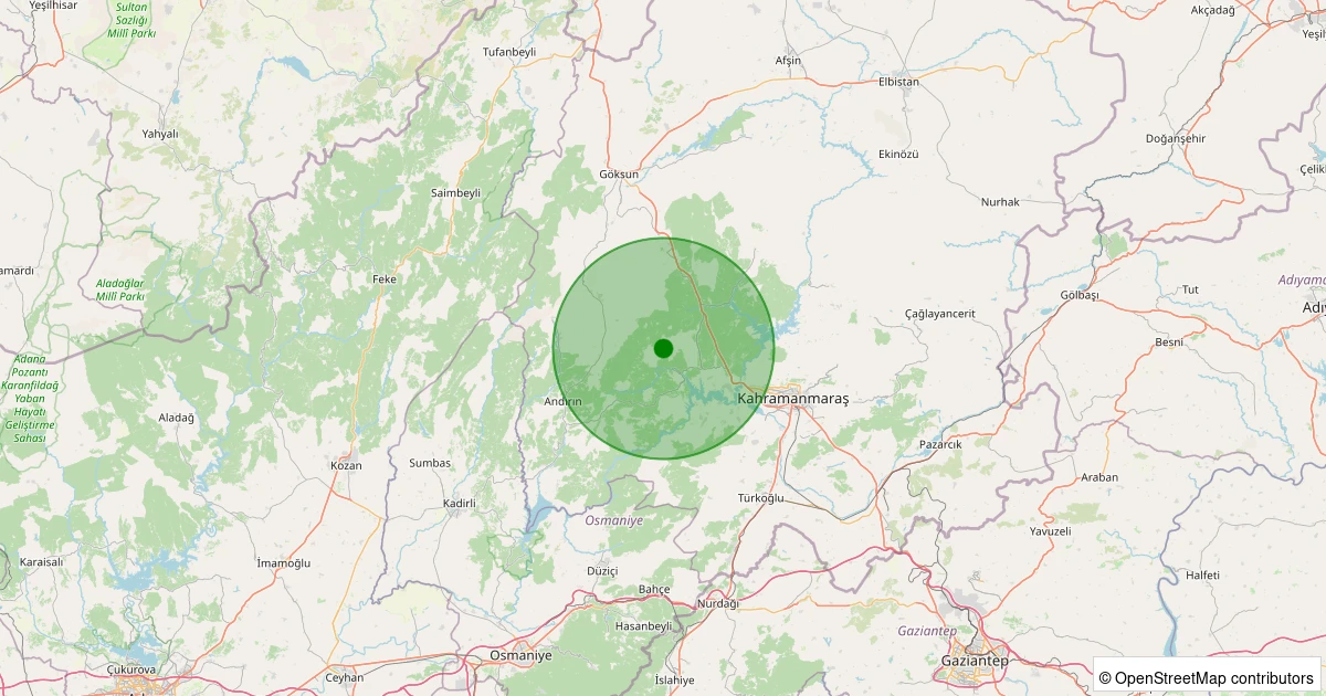 Son 7 gün içinde Onikişubat - Köşürge noktasından 100 km yarıçap içerisinde meydana gelen diğer depremler: