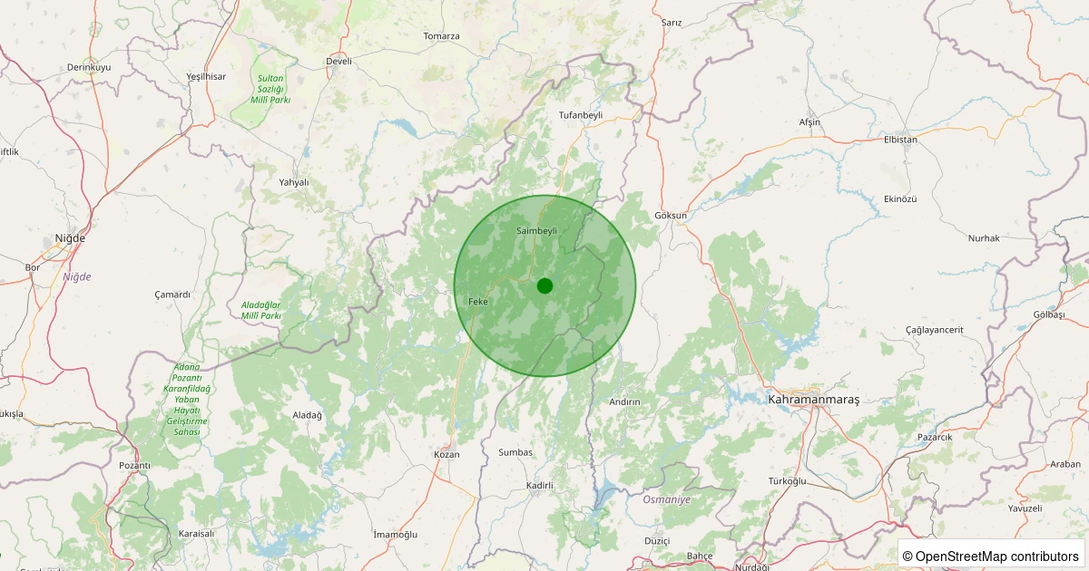 Son 7 gün içinde Saimbeyli - Yardibi noktasından 100 km yarıçap içerisinde meydana gelen diğer depremler: