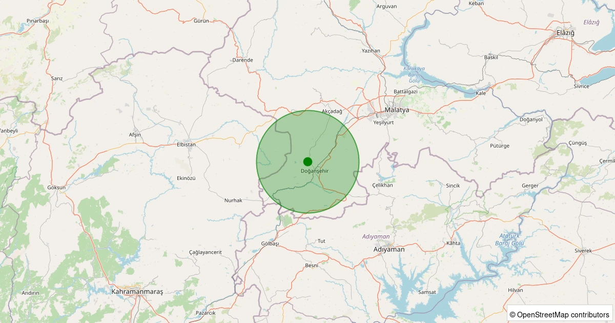 Son 7 gün içinde Doğanşehir - Fındık noktasından 100 km yarıçap içerisinde meydana gelen diğer depremler: