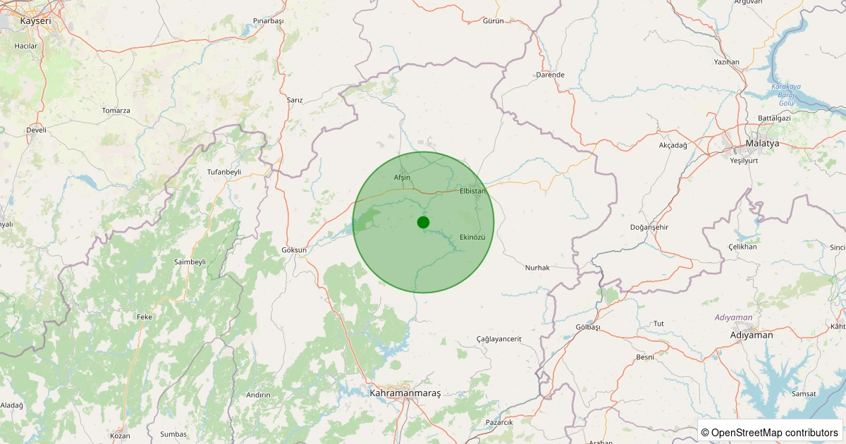 Son 7 gün içinde Göksun - Karadut noktasından 100 km yarıçap içerisinde meydana gelen diğer depremler: