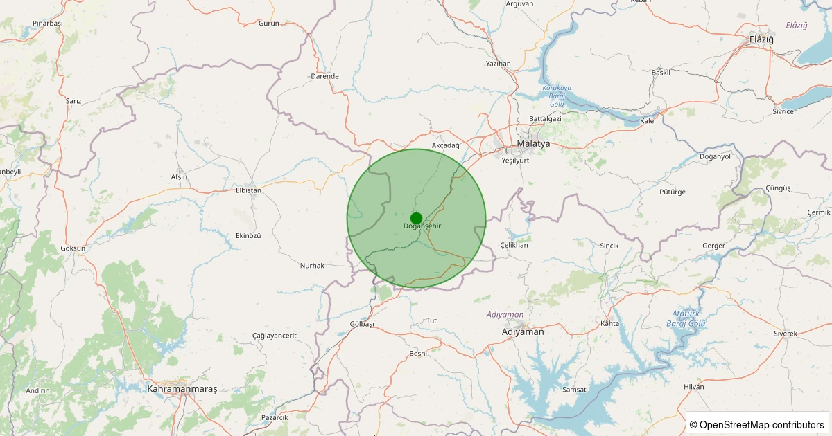 Son 7 gün içinde Doğanşehir - Topraktepe noktasından 100 km yarıçap içerisinde meydana gelen diğer depremler: