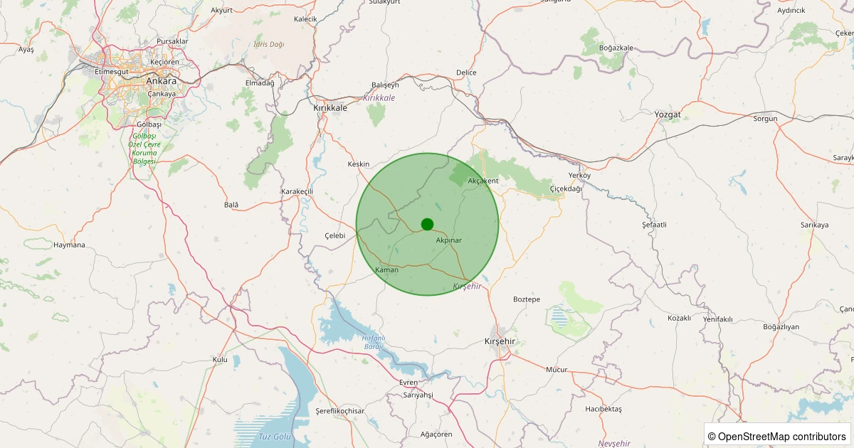Son bir hafta içerisinde Kırşehir şehri Akpınar - Çalıburnu Köyü noktasından 100 km yarıçap içerisinde toplamda 32 deprem kaydedilmiştir. Bu depremlerden en büyüğü 2.1 büyüklüğünde ve en sığ odaklısı 4.90 kilometre derinlikte gerçekleşmiştir.