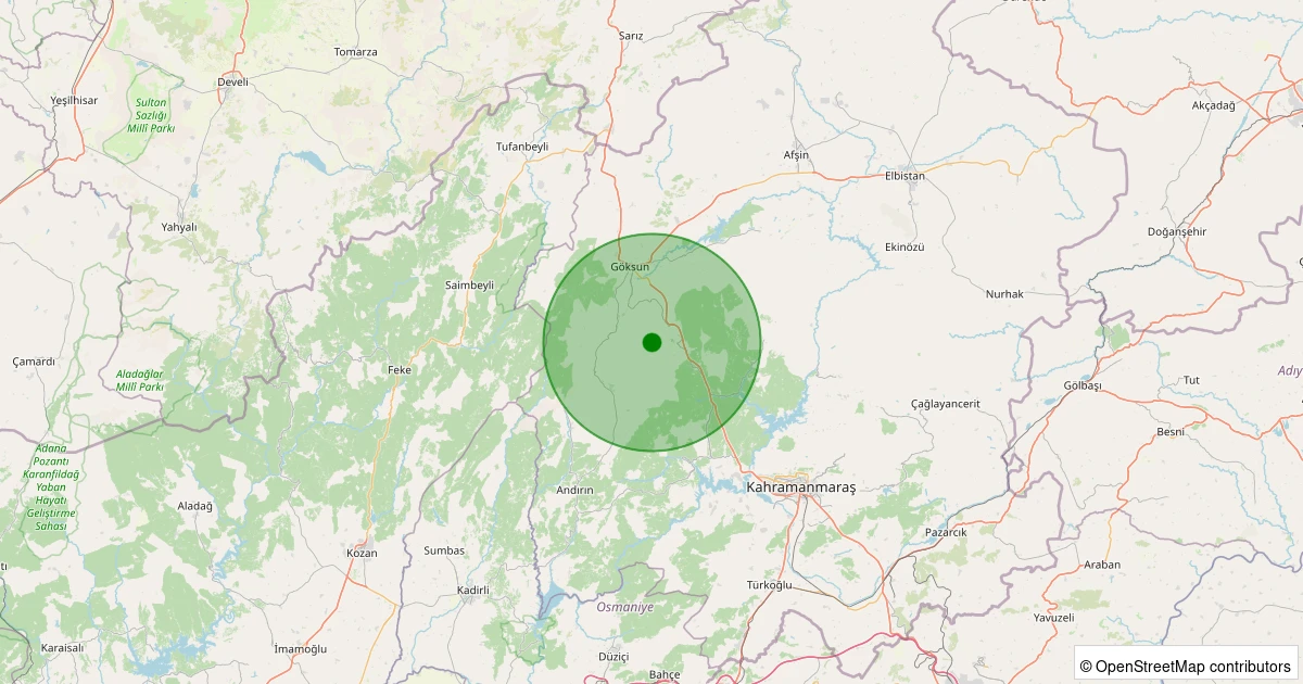 Son 7 gün içinde Onikişubat - Kumarlı noktasından 100 km yarıçap içerisinde meydana gelen diğer depremler: