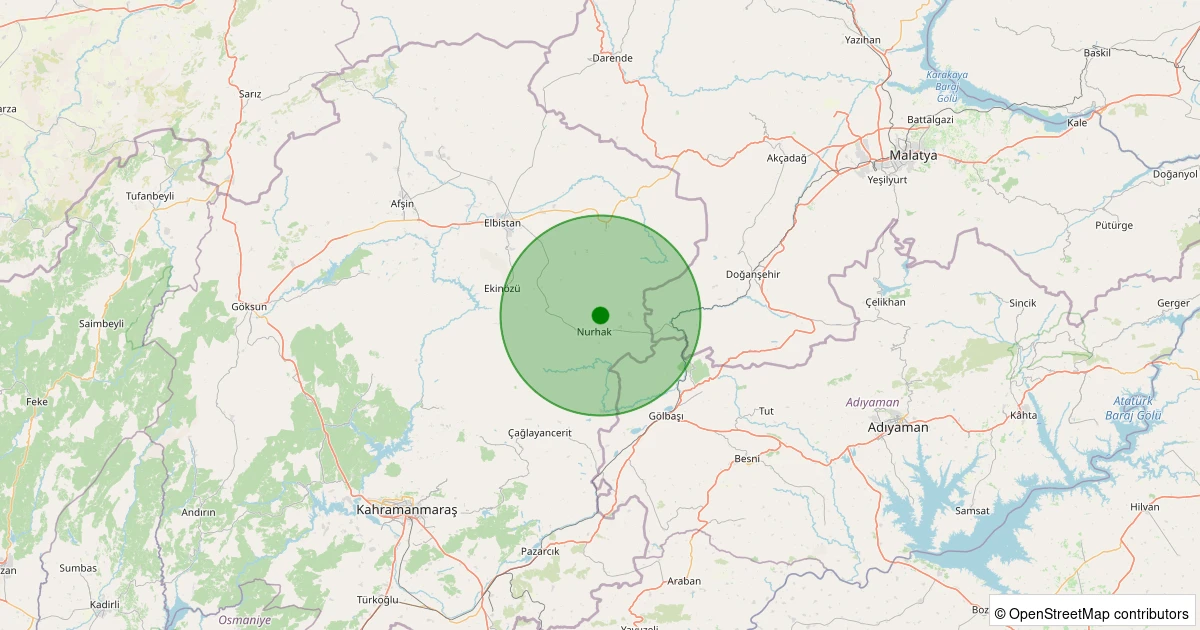 Son bir hafta içerisinde Kahramanmaraş şehri Nurhak - Karşıyaka noktasından 100 km yarıçap içerisinde toplamda 229 deprem kaydedilmiştir. Bu depremlerden en büyüğü 2.8 büyüklüğünde ve en sığ odaklısı 0.00 kilometre derinlikte gerçekleşmiştir.